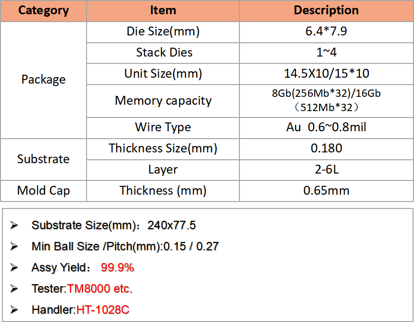 公司憑借先進(jìn)設(shè)備、嚴(yán)格工藝控制和全流程服務(wù),可為客戶提供高可靠Memory芯片封測解決方案。