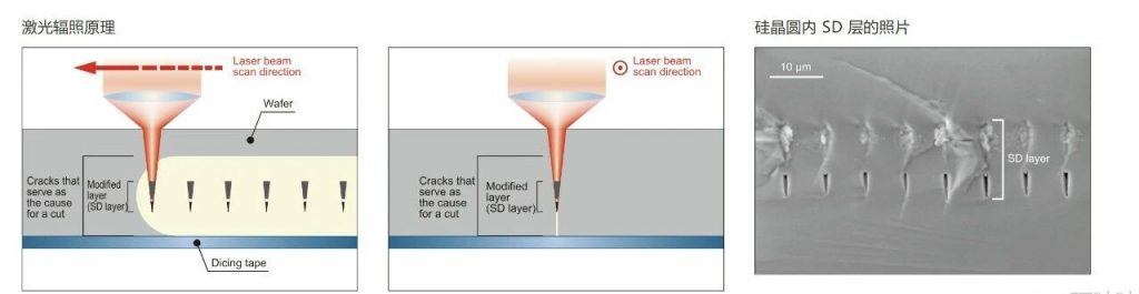 裂紋也從 SD 層形成,而 SD 層在內(nèi)部朝向晶圓的頂部和底部表面形成,這些裂紋通過激光光束掃描沿著計(jì)劃的切割線連接。此外,為了切割 MEMS 器件等厚晶圓,在厚度方向上形成多個(gè) SD 層,然后連接裂紋。